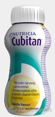 Cubitan s vanilkovou príchuťou 4 x 00 mlObsah: Cubitan s vanilkovou príchuťou 4 x 00 mlCharakteristika Cubitan s vanilkovou príchuťou : Dietetická potravina na osobitné medicínske účely. Cubitan je vysokoenergetická tekutá výživa s vysokým obsahom bielkovín a s arginínom. Určené pre diétny režim pre pacientov s dekubitmi. Bezgluténový prípravok. Balené v ochrannej atmosfére. Ošetrené UHT. Príbalový leták