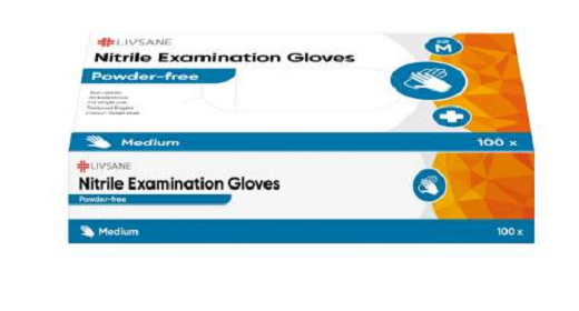 Obsah LIVSANE Nitrilové vyšetrovacie rukavice veľ. M nesterilné nepudrované fialovomodré100 ksCharakteristika LIVSANE Nitrilové vyšetrovacie rukavice veľ. M nesterilné nepudrované fialovomodréNitrilové vyšetrovacie rukavice. Osobný ochranný prostriedok. Na jednorazové použitie. Farba: fialovomodrá Nesterilné. Nepudrované. Obojruké. Dĺžka: minimálne 40 mm (medián). Rolovaná manžeta. Textúra na prstoch pre lepšie uchopenie. Vhodné na manipuláciu s potravinami. Vyrobené v súlade s normou EN 455. Kvalita: AQL 1 5 (norma pre zdravotnícke pomôcky). PoužitiePodľa potreby na ochranu rúk. Na jednorazové použitie. UpozornenieVýrobok môže obsahovať zvyšky chemikálií použitých pri výrobe ktoré môžu u niektorých ľudí vyvolať alergické kožné reakcie. Ak sa objaví kožná reakcia výrobok prestaňte používať. Akékoľvek závažné nežiaduce udalosti súvisiace s výrobkom sa musia nahlásiť výrobcovi distribútorovi a Štátnemu ústavu pre kontrolu liečiv