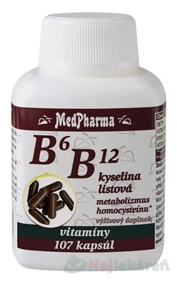 MedPharma B6 B1 + kyselina listová 107 cps Doplnky stravy pre mužov Podporte zdravie svojho organizmu a dodajte telu dávku vitamínov. Výživový doplnok MedPharma B6 B1 + kyselina listová obsahuje vitamín B ktorý prispieva k zníženiu miery únavy a vyčerpania k normálnej činnosti nervovej sústavy ale aj k udržaniu zdravej pokožky. Vlastnosti: prispieva k zníženiu miery únavy a vyčerpania prispieva k normálnej činnosti nervovej sústavy prispieva k normálnej tvorbe červených krviniek pomáha udržať normálny stav slizníc a pokožky prispieva k normálnej funkcii imunitného systému