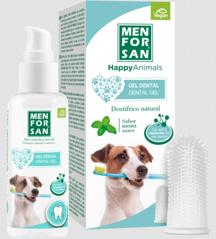 Obsah MEN FOR SAN prírodná zubná pasta 60ml + kefka60 ml + kefka na prstCharakteristika MEN FOR SAN prírodná zubná pasta 60ml + kefkaGélová prírodná zubná pasta pre psov s jemnou mätovou príchuťou ktorá udržuje svieži dych a kontroluje zubný povlak. K zubnému gélu dávame zadarmo náprstok pre jednoduché čistenie! PoužitieNaneste malé množstvo gélu na náprstok alebo zubnú kefku a jemne vyčistite zuby a ďasná od zadnej k prednej časti. Gél naneste aj na vnútornú stranu zubov. Odporúča sa časté používanie dokonca aj denne.