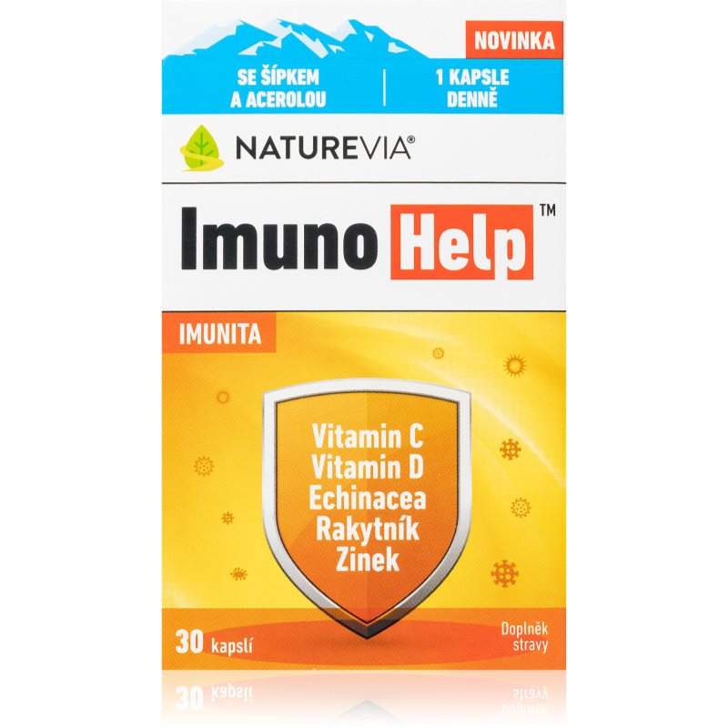 NatureVia ImunoHelp 30 cps Doplnky stravy pre mužov Keď sú nároky na vašu imunitu zvýšené NatureVia ImunoHelp sa stane vaším najlepším spojencom. Obsahuje vitamín D a zinok v organickej optimálne vstrebateľnej forme. Prípravok je ďalej obohatený o rakytník šípky a acerolu ktoré sú bohaté na vitamín C s vysokou biologickou dostupnosťou. Nechýba ani echinacea veľmi obľúbená na podporu imunity a zdravia dýchacích ciest. Vlastnosti: komplex vitamínov C a D3 zinku a rastlinných extraktov podporujú imunitu a prirodzenú obranyschopnosť prispievajú k zdraviu horných dýchacích ciest pomáhajú znižovať únavu a vyčerpanie chránia bunky pred oxidačným stresom bez farbív a konzervantov mlieka a laktózy lepku v rastlinnej kapsule – vhodné pre vegánov