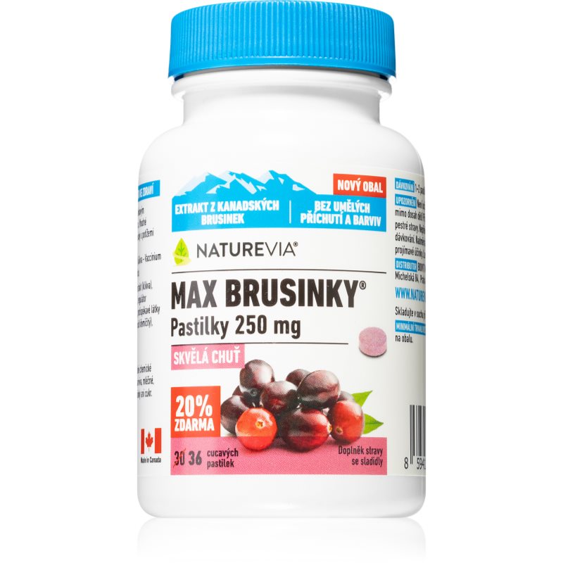 NatureVia Max Brusnice 50mg 36 ks Vitamín C pre ženy Severoamerická brusnica má nadštandardne vysoký obsah prírodných látok s fyziologickým účinkom. Sú vhodné zvlášť pre deti a osoby s problémami prehĺtania tabliet. Produkt neobsahuje chemické konzervačné látky syntetické farbivá mlieko pšenicu sóju kvasnice.